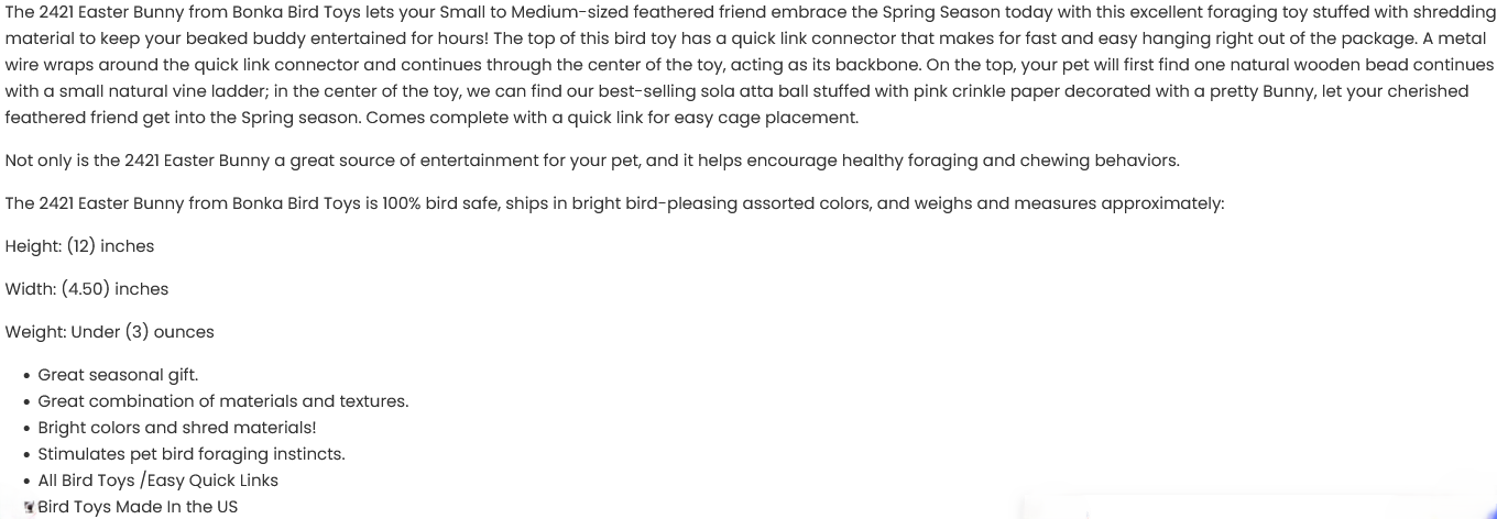 2421 Easter Bunny Bird Toy