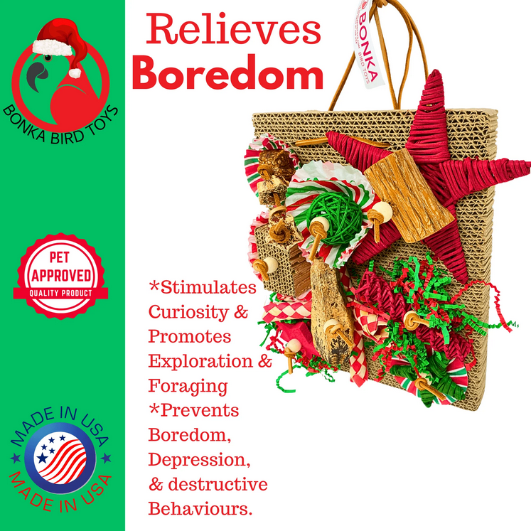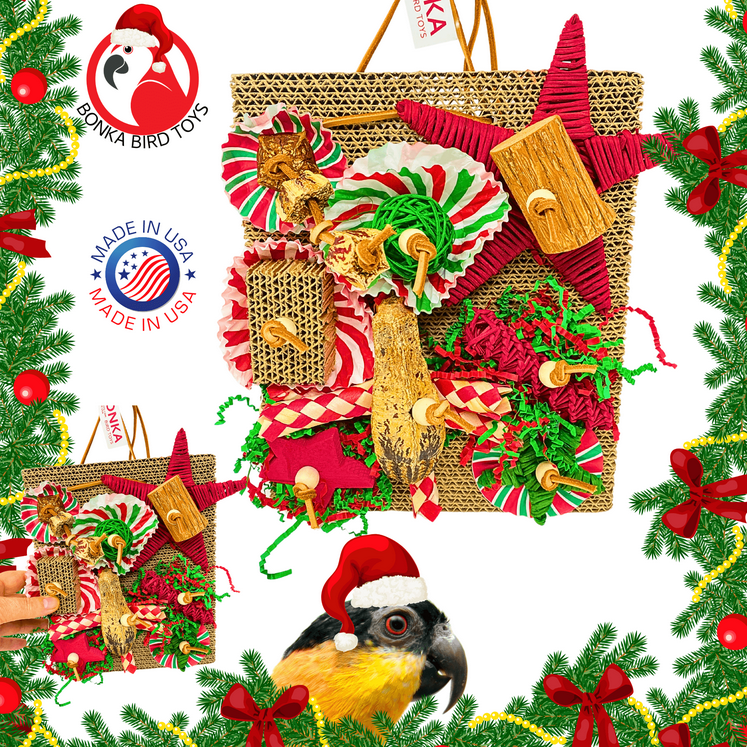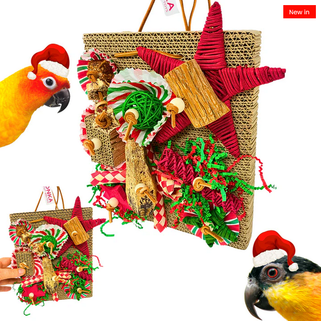 This Merry Munch Board is a Christmas-themed playground that engages all of your bird’s senses. The sturdy natural materials give their beaks something satisfying to chew, while the crinkle and paper elements make shredding and digging fun. It’s like a holiday buffet of enrichment — giving your bird a joyful, seasonal way to stay busy and happy.