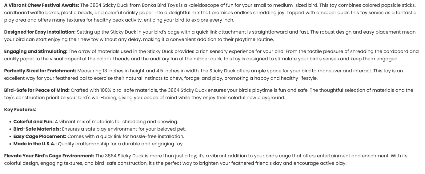 3864 Sticky Duck Bird Toy
