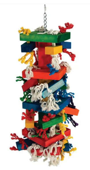 The Deluxe Preener & Mega Blocks is designed to meet the physical and mental needs of large birds. Its combination of colorful blocks and preening ropes ensures your feathered friend stays happy, healthy, and entertained. This toy is a must-have for providing enrichment and supporting your bird’s natural instincts.