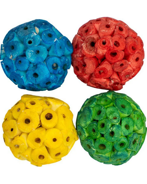 These soft sola balls are made from natural plant fibers, making them perfect for small birds to chew, shred, or use in custom toys. Each pack includes four balls, lightweight and sized for beak-safe enrichment.