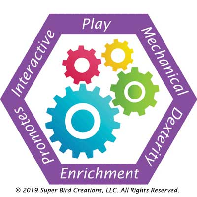 - Super Bird Creations toy designs use a diverse selection of stimulating bird-safe materials to ensure the mental and physical well being of pet birds