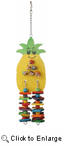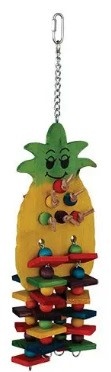 Extra Large Pineapple toy will make a fruity and fun addition to the birdcage. The wood pieces strung onto the wooden “pineapple” are the perfect size for chewing, tugging, and pulling. This toy is recommended for large birds such as amazons or small cockatoos. Birds will love tugging on the string of wooden beads, or twisting and picking at the leather strips. Each of the wood pieces is dyed using natural food dyes, and the quick link allows the toy to attach to virtually any birdcage.
