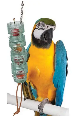 Birds need to turn it to learn it! The Turn ‘n Learn Log is a fun foraging toy for your medium or large sized bird. The Turn ‘n Learn Log has multiple difficulty levels. For the beginning problem solver, only tighten the sections slightly. For the more experienced forager, tighten them all the way. Fill each section with your bird’s favorite treat so he will quickly learn how to unscrew the cups and retrieve the hidden prizes inside. The Turn ‘n Learn Log is made from durable polycarbonate, so it will last a long time against your curious bird’s chewing and biting. Installation is easy! Just fasten the Turn ‘n Learn Log to the top of any cage and secure it with the quick link.