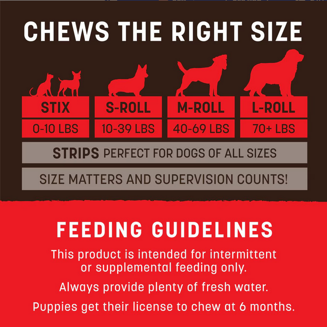 Always monitor your dogs while they chew and be sure they have plenty of fresh, clean water nearby. If they cannot be supervised, remove the chew from their reach.