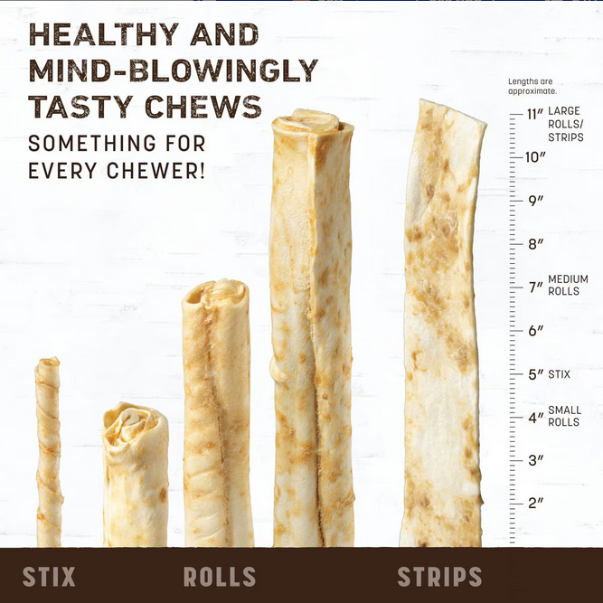 Always monitor your dogs while they chew and be sure they have plenty of fresh, clean water nearby. If they cannot be supervised, remove the chew from their reach.