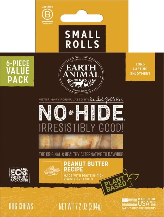 Earth Animal No-Hide Small Rolls Peanut Butter Recipe Chew Dog Treats, 6 Pack