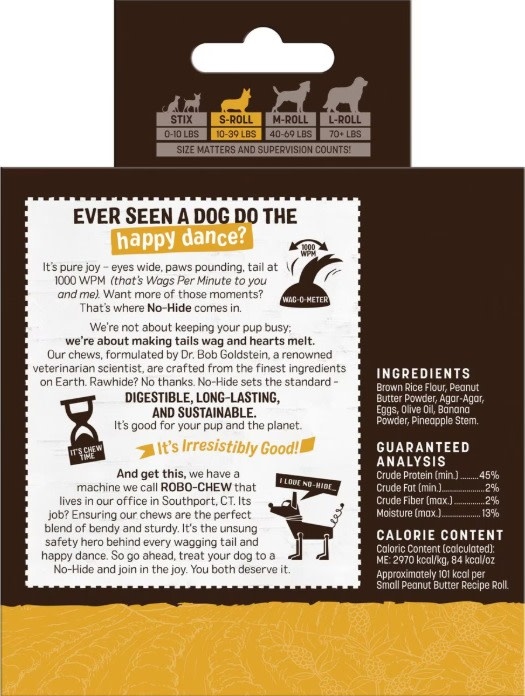 Treat your furry friend to Earth Animal No-Hide Small Rolls Long Lasting Natural Rawhide Alternative Peanut Butter Vegetarian Recipe Chew Dog Treats and watch their tail wag with joy. These gnaw-some treats are made in the USA with simple, wholesome, and highly digestible ingredients, including protein-rich roasted peanuts. Designed specifically for small pups weighing 10-39 pounds, these chews are crafted with limited ingredients and contain no synthetic chemicals, additives, bleaches, or formaldehyde. Plus, they make a great alternative to traditional bully sticks with a drool-worthy texture that softens and breaks down as your furbaby chews, promoting healthy teeth and gums while providing hours of entertainment. Give your four-legged family member the best with Earth Animal No-Hide Small Rolls.