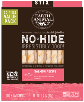 EARTH ANIMAL NO-HIDE STIX SALMON VALUE 20 PACK DOG/CAT TREAT STIX