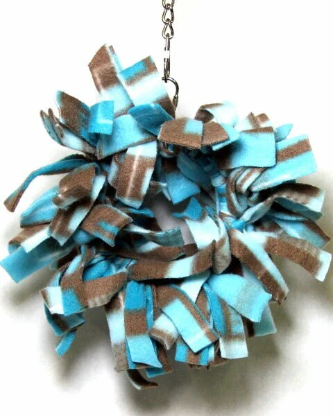 It's Fleece, it's a Hoop, it's a Floop! Plastic Ring covered in soft fleece. Great for feather pickers to keep their beak busy preening. Use as a swing or just a great place to hang around. Nice spot for a nap. Machine Washable. Colors vary based on availability. Includes nickel plated pear link or quick link for easy hanging.