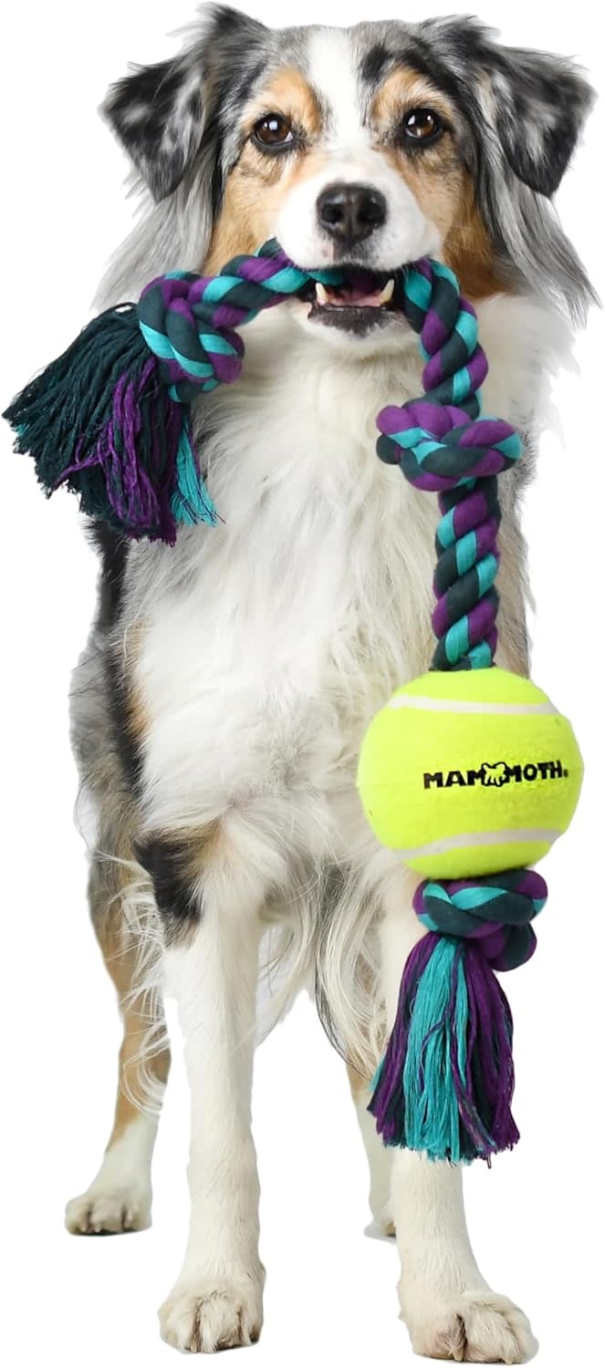 X-LARGE DOG TOY: This 36-inch dog tug toy is an ideal play and chew toy for large dogs weighing 80+ lbs; this extra-large chew rope and ball is a suitable dog toy for large dogs. Flossy Chews toys for smaller breeds are also available.