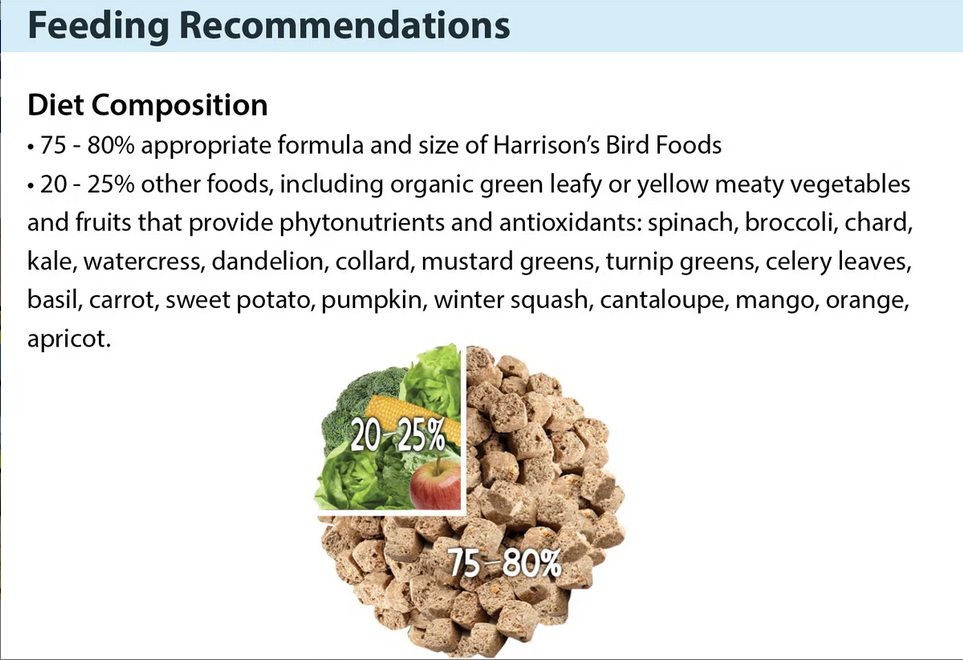 Harrison's Bird Foods is a family of certified organic, formulated diets that were created by avian veterinarians and nutritionists with the health of your bird in mind. Harrison's Foods formulas require little or no supplementation.
