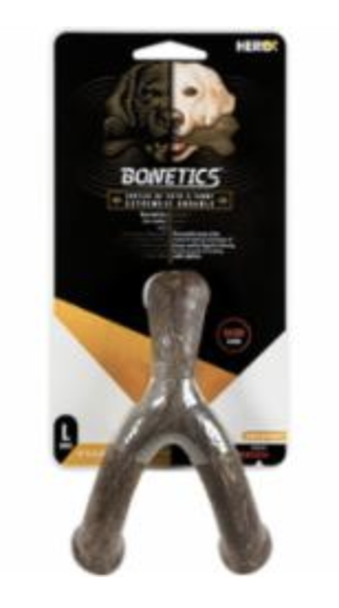 Introducing new Hero Bonetics™ dog chews! Hero Bonetics is the result of a two-year in-depth scientific study of the material, design, and production of dog chews. The goal? Create a safer dog chew that is extremely durable and great tasting! Our proprietary, real wood blended nylon material outlasts and outperforms other bones on the market, and dogs are unable to resist!