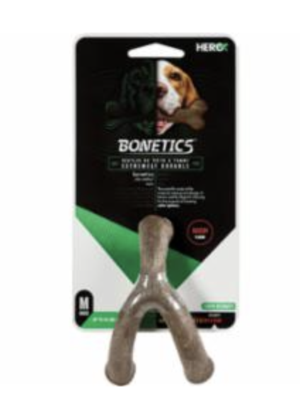 Introducing new Hero Bonetics™ dog chews! Hero Bonetics is the result of a two-year in-depth scientific study of the material, design, and production of dog chews. The goal? Create a safer dog chew that is extremely durable and great tasting! Our proprietary, real wood blended nylon material outlasts and outperforms other bones on the market, and dogs are unable to resist!