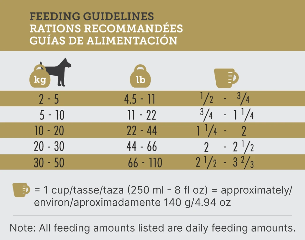 Metabolizable Energy (ME) = 4140 kcal/kg = 580 kcal/cup