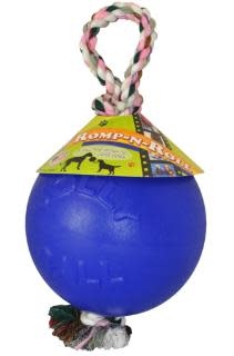 This ball on a rope can be kicked, carried and tugged. The rope can be pulled back and forth through the flexible ball but not through it. Great for multi-dog homes.