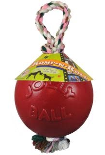 This ball on a rope can be kicked, carried and tugged. The rope can be pulled back and forth through the flexible ball but not through it. Great for multi-dog homes.