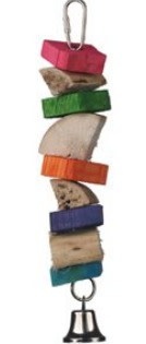 Jungle Toys are 100% made in the USA in California! We recommend watching the bell on this if used for bigger birds. Also, we recommend any pear shaped clasps being replaced due to several birds getting their beaks stuck in pear shaped holding devices. Remember, close all clasps before leaving the toy with your parrot, never leave them "just hooked on without tightening". Toys come straight from manufacturer.