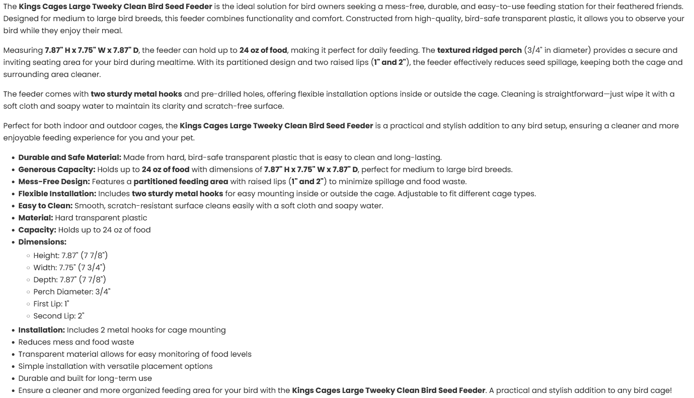 Kings Cages Large Tweeky Clean Tidy Bird Feeder