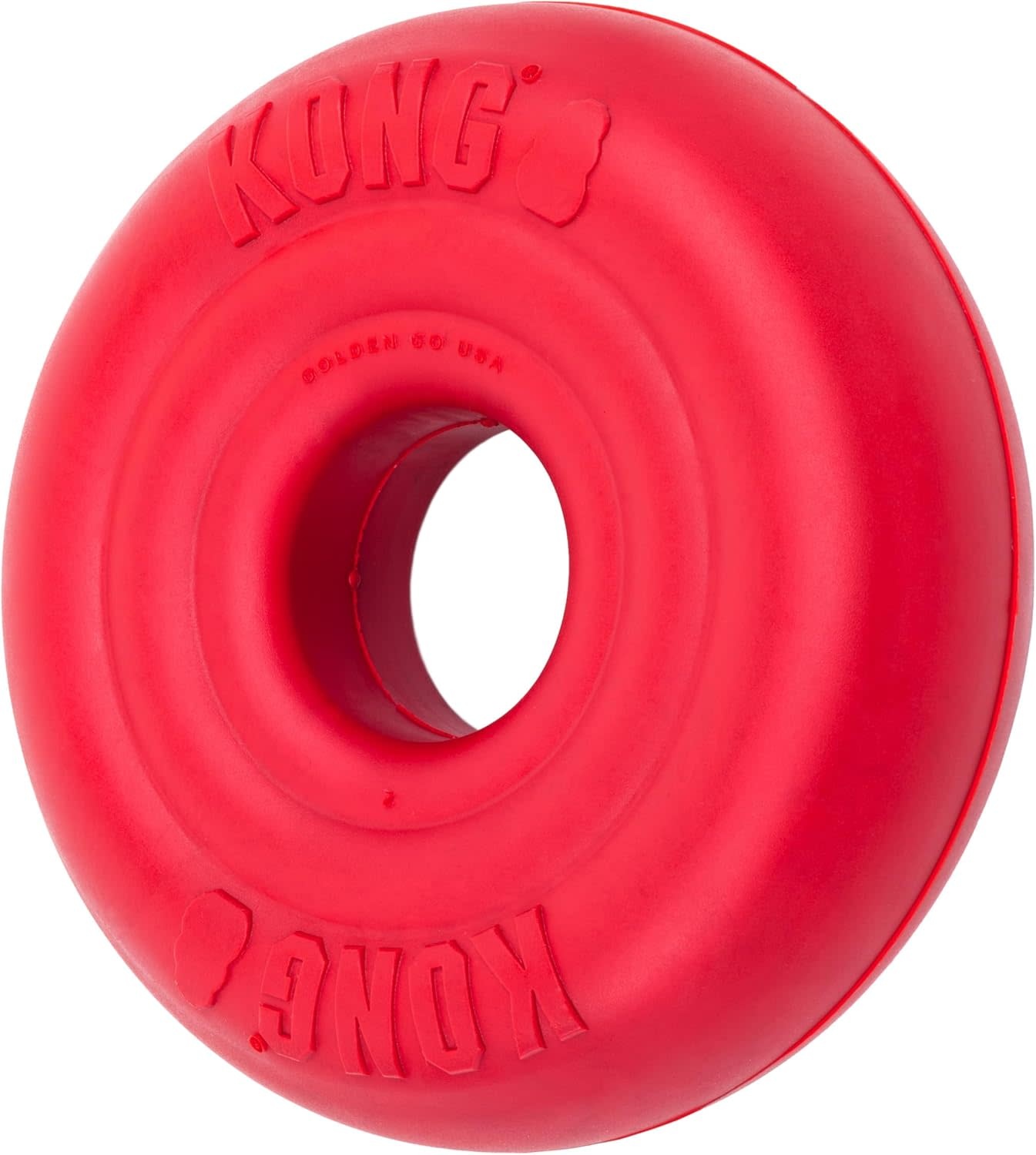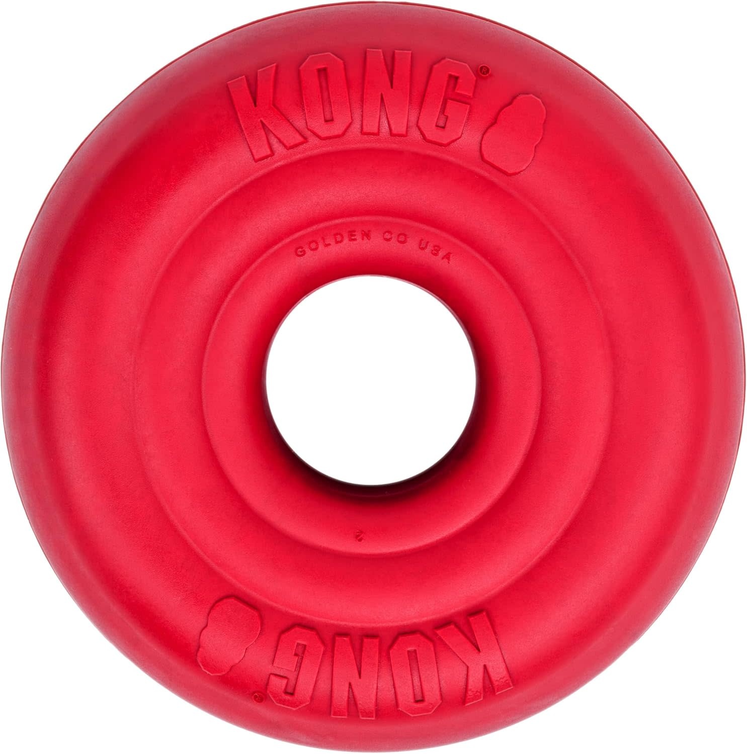 Dogs have an instinct to chew. Whether it's a toy, your favorite slippers, or the legs of your sofa, chewing is simply part of their nature. With a KONG Donut, your pup can satisfy this instinct with appropriate chewing behavior. This toy is made with high-quality natural rubber, allowing it to withstand countless hours of chewing. Unlike nylon, hard plastic, sticks, and bones, rubber doesn't splinter and is gentle, helping promote healthy teeth and gums. The donut shape lets it bounce and roll, making every fetching session lively and fun! The KONG Donut is strong, but if you have a power chewer, try the KONG Extreme Donut, made from our toughest natural rubber. If your dog is an avid chewer, the KONG Donut makes playtime extra fun!