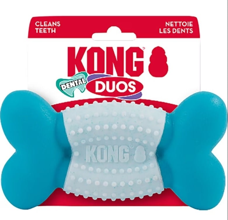 Your furry friend needs to chew. You need their teeth and breath to be clean and fresh. The easy solution is the KONG Goomz Dental Bone Dog Toy. This chew toy is brilliantly designed to delight your pal with dual textures and raised nubs that create a great chewing experience. It simultaneously delivers a daily dental cleaning, making your pup’s teeth sparkle and their breath fresher. This bone-shaped toy is specifically created for medium- to large-sized dogs and is easy for them to pick up, so it’s also ideal for great games of fetch. Plus, you can add your companion’s favorite doggie toothpaste (sold separately) on the surface of the toy to provide even more dental benefits.