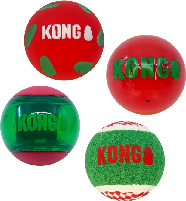 KONG Holiday Occasions Assorted Balls 4 Pack