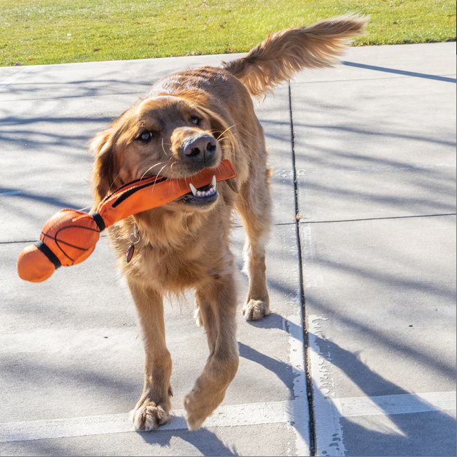 Let your furry baller have a slam dunkin’ good time with the Kong Wubba Sport Basketball Squeaky Plush Dog Toy. Designed with a long, floppy tail, this toy is perfect for igniting your pup’s natural instincts to shake and thrash. It’s also great for tugging and fetching, making playtime even more exciting. The reinforced ballistic material and stitching ensure durability, while still being gentle on your furbaby’s teeth. And with a squeaker inside, this toy will keep your barking BFF engaged and entertained. Whether at the park or on the court, this Wubba Sport Basketball is the perfect accessory for your b-ball-loving bud.