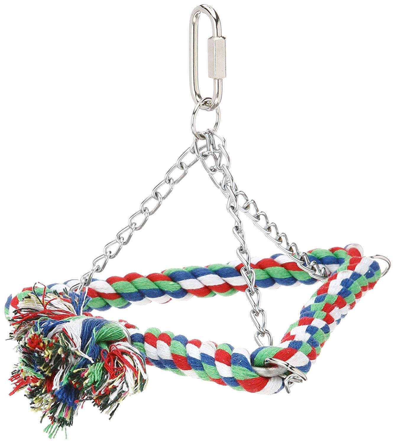 Featherland Paradise makes the best Cotton Pyramid Swing perches available for pet birds. These comfortable, cotton-covered perches are ideal for bird feet to grip, and provide a place for birds to hang out and relax. The quick link allows the perch to attach to virtually any birdcage. We offer the Cotton Swing Perch in three sizes for all different kinds of birds.