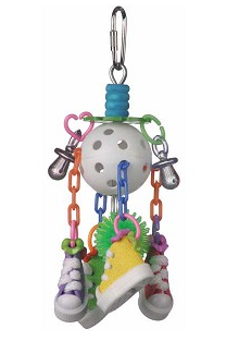 Kick Ball Jr. provides fun action for your high energy bird. Colorful canvas sneakers dangle and bob around a porcupine ball, giving this bird toy great movement.