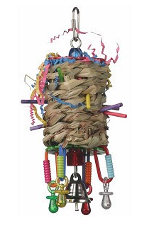 Foraging Roll is a great starter foraging toy. This woven seagrass tube is stuffed with festive colored paper and threaded with lollipop sticks. Hide some favorite nuts or treats to enhance the fun!~Perfect for Caiques, Small Conures, Lories, Meyers, Pionus, Quakers, Ringnecks, Senegals and similar sized birds.~Made with bird safe components and food grade colorants.~Stuff with dry treats to create a foraging experience.~Foraging devices require birds to seek and work for their food. Hide treats inside the toy to create a foraging opportunity for your bird.~Destructible toys satisfy a bird's instinctual drive to chew and promote good beak health.
