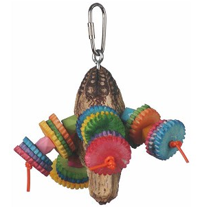 Your bird will Zip-a-de-do-dah the day away with this sola chip and mahogany pod bird toy. Your bird with love the texture of the sola coins strung around a mahogany pod. Great shreddable toy to encourage even the gentlest of chewers.