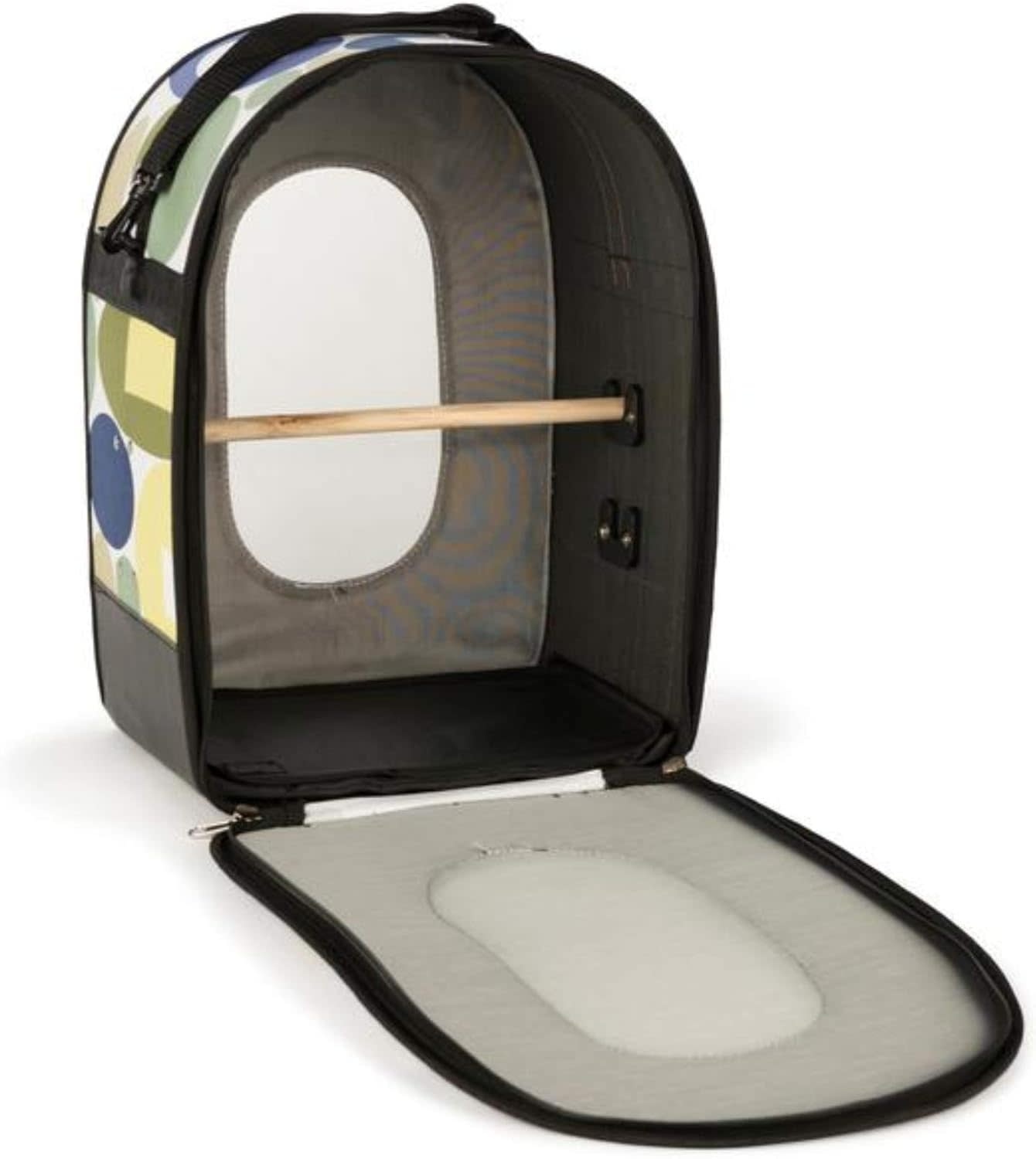 Prevue Pet Products Soft Sided Bird Travel Carrier with Perch Medium 1309 is lightweight, convenient, and ready to go. Durable, double-stitched canvas fabric with stiff panel sides and bottom is sturdy and features an integrated handle strap in addition to the detachable shoulder strap with pad. Breathable wire mesh window screens let your bird see its surroundings while the front panel unzips, letting your feathered friend climb in and out easily and giving you full access to the interior of the carrier. The included wood perch is adjustable, and there is a removable interior floor pad for easy cleanup when your trip is over. Double zipper locks can be locked together with a small security lock, not included. Suitable for conures, parakeets, cockatiels, and similar-sized birds – all Prevue cages and carriers undergo independent lab testing to conform to the highest levels of pet safety. Ideal for short-term use, traveling, or emergency situation,s Prevue’s Soft Sided Medium Bird Travel Carrier with Perch measures 13 ¼’’ Long, 9 7/8’’ Wide, and 18 ½’’ High.