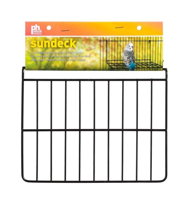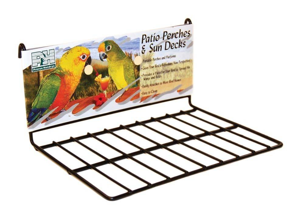 Prevue Pet Products Small Black Wire Patio Sundeck attaches to most cages providing an extra resting spot for your bird. Coated wires are non-toxic and easy to clean place multiple patio's throughout the cage to give each bird their own space. Our Black Wire Patio Sundeck is 8x6.5x4 with 9/16in wire spacing.