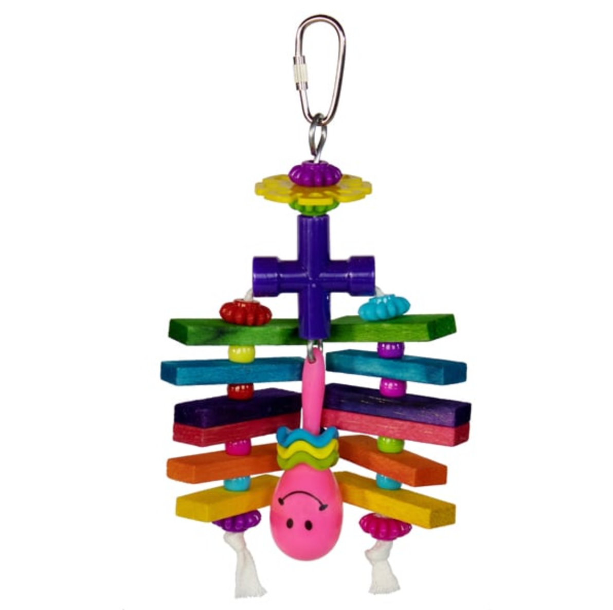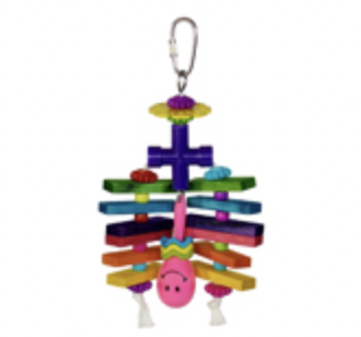 Our Rainbow Rattler offers a healthy variety of play opportunities and will make a bright addition to your bird’s home with its many colorful parts and fun to rattle maraca.