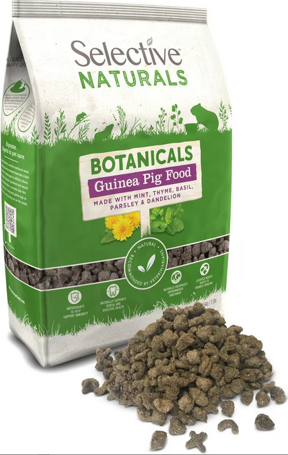 Indulge your guinea pig’s natural instincts with Science Selective Botanicals Guinea Pig Food for Small Pets. This super premium food is packed with a delicious blend of timothy hay and botanical herbs, including mint, thyme, basil, parsley, and dandelion. The variety of nugget shapes promotes natural foraging behaviors and mimics their wild feeding instincts for a source of environmental enrichment. With essential nutrients and a high fiber content, this food supports optimal dental and digestive health. Plus, it’s rich in natural ingredients and contains no added sugars, artificial colors, or flavors. Give your furry friend the consistent nutritional value they deserve with Selective Naturals Botanicals Guinea Pig Food.