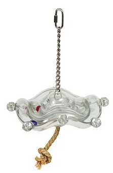 Silly Saucer stimulates your bird with both sights and sounds! Small beads inside the odd-shaped saucer move and turn when your bird maneuvers the toy, captivating your bird. Made of durable polycarbonate, the Silly Saucer provides many opportunities for chewing and playing. The Silly Saucer also comes in a large size, making it suitable for different sized birds. Installation is easy! Just fasten the Silly Saucer to the top of any cage and secure it with the quick link.