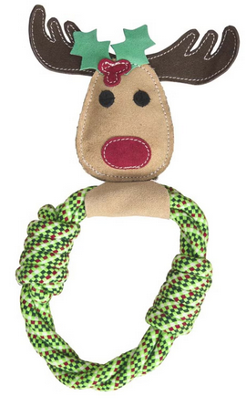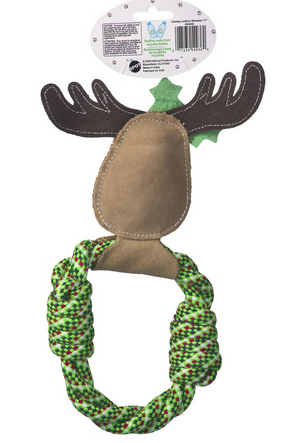 Our holiday dog toys make the perfect gifts and stocking stuffers for your favorite pup. The 11" leather reindeer is super durable and includes a squeaker for even more fun at playtime.
