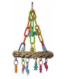 Looking for a cute colorful swing for your bird? Look no further than our Jungle Ring bird toy. Brightly colored plastic chain and links connect to a sturdy vine ring, with charms that bob and sway.