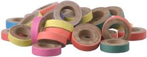 A 1.75" outside diameter and 3/8” thick birdy bagel with a 1" inside diameter hole in the center made of tightly wound cardboard. Great as a foot toy or part of a larger toy.