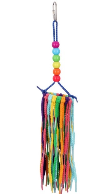 Introduce your feathered friend to the ultimate playtime companion with the Super Bird Creations Rainbow Aglets Preening Bird Toy. This toy is specially designed for pet birds like ringnecks, conures, Quakers, caiques, pionus, Senegals, and more. By promoting physical and mental activity, the Rainbow Aglets Preening Bird Toy can help prevent boredom and destructive behaviors like feather picking. Plus, it’s made with bird-safe materials for your peace of mind. This must-have toy will provide hours of entertainment for your beaked buddy.