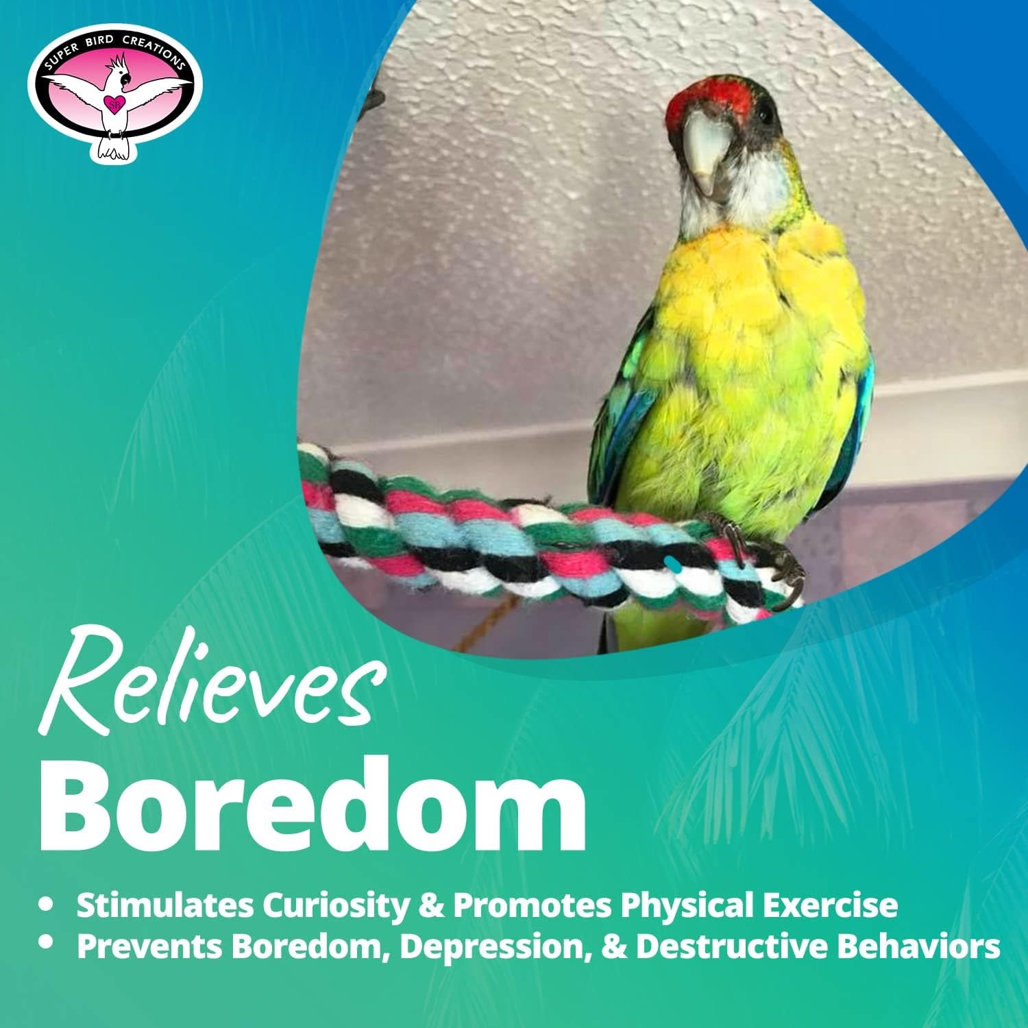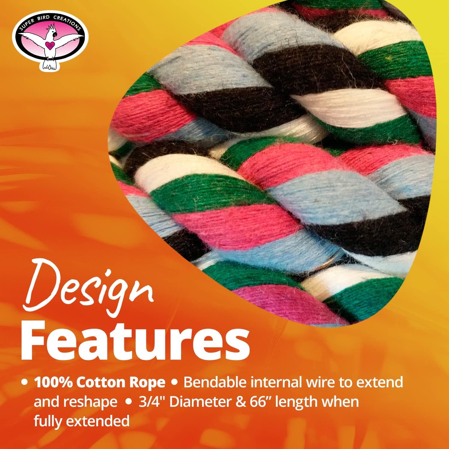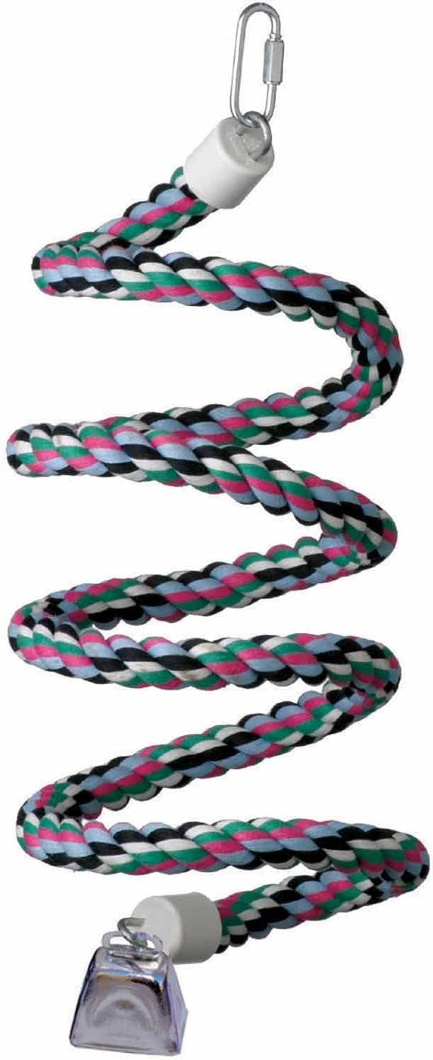 Turn perch time into a boredom-busting workout with the Super Bird Creations Rope Bungee Bird Perch! This bouncy spiral perch is designed to develop your bird's balance and coordination. Use the internal wire to bend and reshape the coil as needed. Then, watch on as your pal works his leg muscles to find the perfect perching position. The 100% cotton shell exterior makes it easy to grip and durable enough for daily use. Plus, the jingling bell makes it even more entertaining!