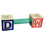 Great foot toy for any size bird. 2 ABC blocks with wood dowel connector.