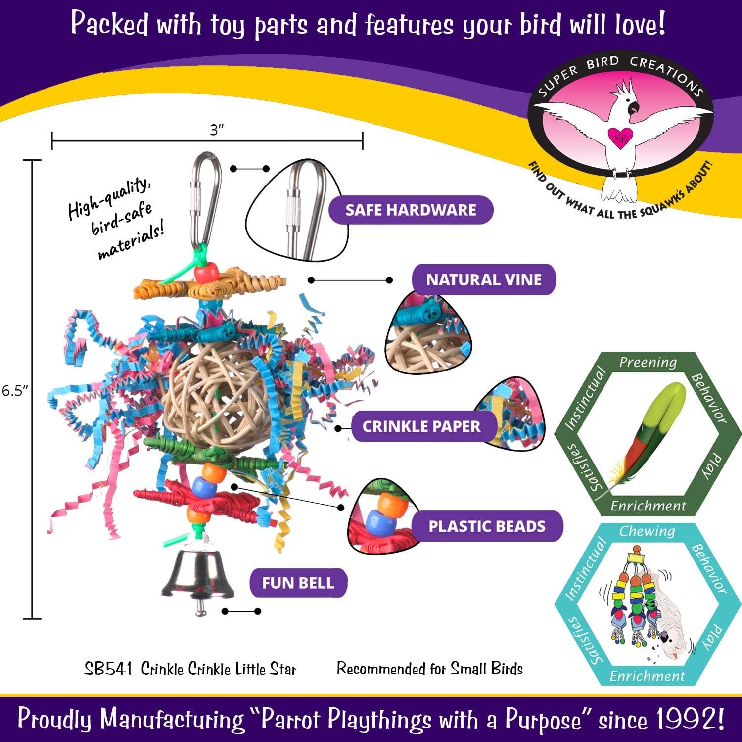 Super Bird Creations 6-1/2 by 3-Inch Crinkle Crinkle Little Star Bird Toy, Small