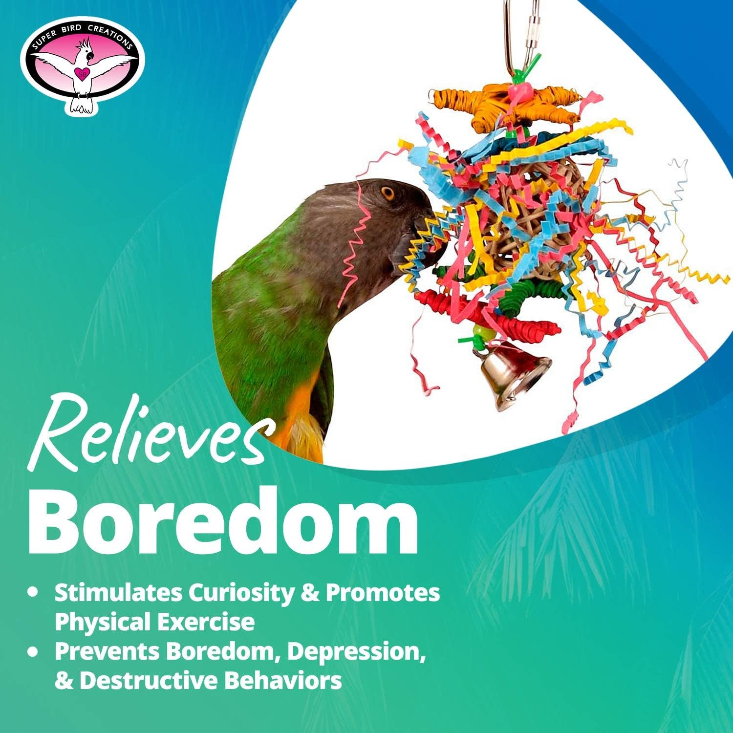 Super Bird Creations toy designs use a diverse selection of stimulating bird-safe materials to ensure the mental and physical well being of pet birds