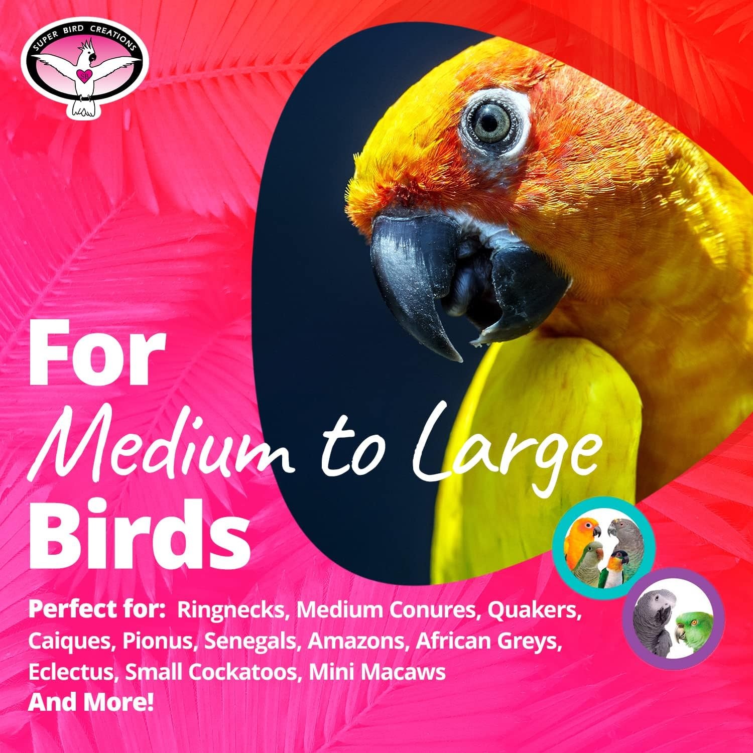 FOR MEDIUM BIRDS – The 2.5" Kaleidoballs bird foot toy by Super Bird Creations is the perfect size for Ringnecks, Medium Conures, Quakers, Caiques, Pionus, Senegals and similarly sized pet birds.