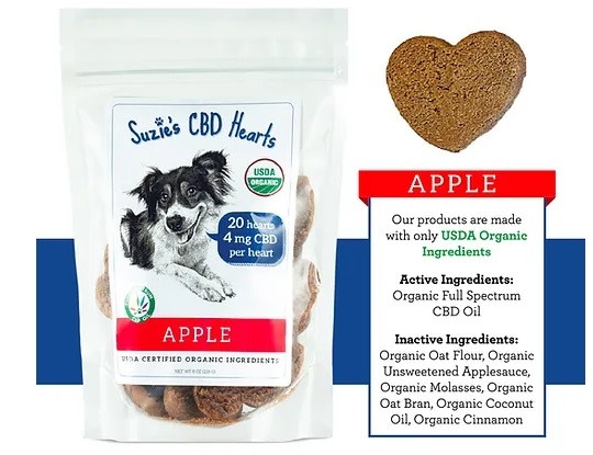 SUZIE S CBD 4 mg HEARTS FOR DOGS APPLE FLAVOR 8 oz. 20 count pack