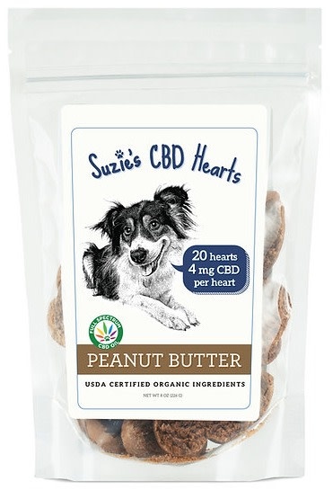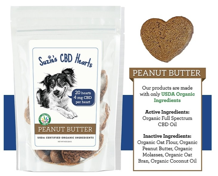 SUZIE S CBD 4mg PEANUT BUTTER FLAVOR HEARTS FOR DOGS 8 oz. 20 count