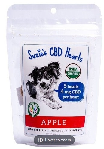 SUZIE'S CBD 4 mg. HEARTS APPLE FLAVOR 5 PACK DOGS TRIAL SIZE