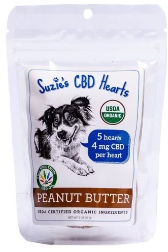 SUZIE'S CBD 4 mg. HEARTS PEANUT BUTTER FLAVOR 5 PACK DOGS TRIAL SIZE 2OZ.