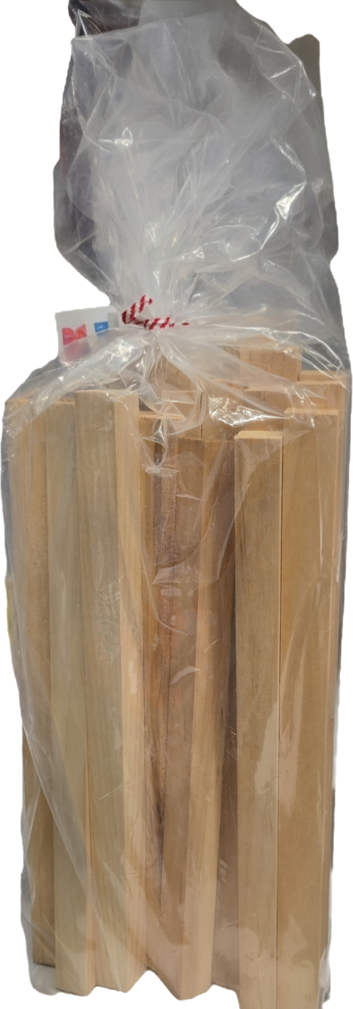 This all-natural wood contains a bulk bag with 25 pieces. Each piece is 5/8" x 5/8" x 10" long.